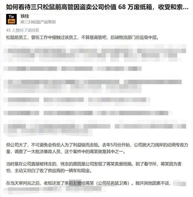 近日,裁判文书网公开了一起三只松鼠2名员工因收受贿赂,还私自“捡”废纸箱卖钱而被判刑的案子。