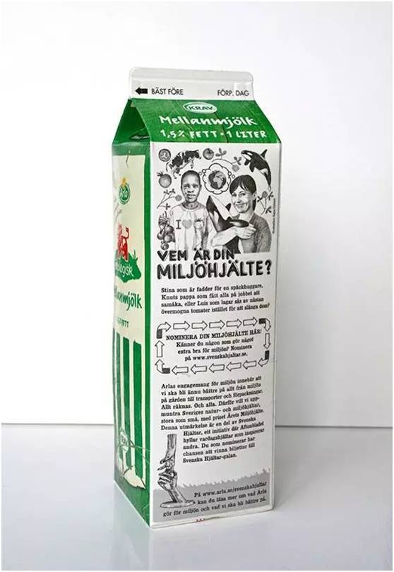 Arla牛奶包装盒,就是一个与消费者沟通的渠道以及媒体版面,提供给了读者一份有趣的日报。在过去的几年中,这些内容已经被重新整合成为食谱网站和食谱书。