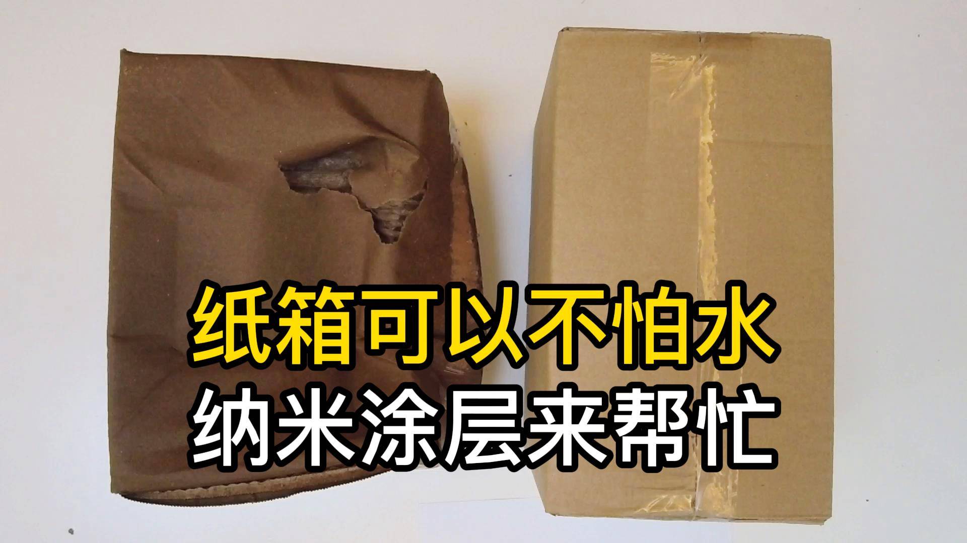 经过我们的测试,纸箱有了纳米涂层,具备强大的防水能力,也仍然有抗压能力,成为了强耐水功能的瓦楞纸箱。纳米涂层,简单好操作,效果明显,除了可以用在纸箱上,也适用于各种材料,您想到做生意的点子了吗?