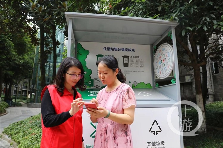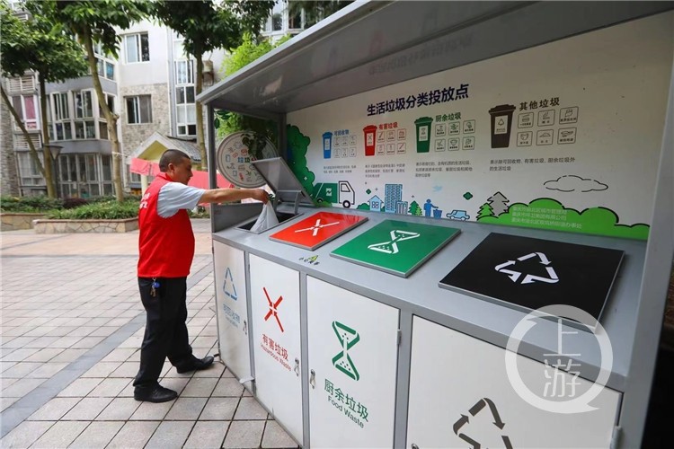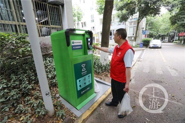 渝北区城市管理局通过入户走访、搜集民意,一方面制作了垃圾分类宣传贴,动员辖区菜鸟驿站、妈妈驿站等快递服务企业张贴在快递包装盒上,另一方面,在小区菜鸟驿站、快递收纳柜等旁边设立可回收物投放设备,安排小区巡检员定点宣传,对拿取快递的居民进行分类投放引导,高效回收快递包装。