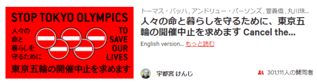 这里是东京, “30万人签名请愿:为保人命,请中止东京奥运会!”, 2021-05-09