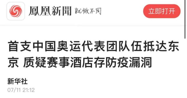 新华社, “首支中国奥运代表团队伍抵达东京 质疑赛事酒店存防疫漏洞”, 2021-07-11