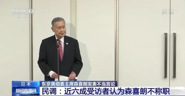 央视新闻, “东京奥组委主席森喜朗发表不当言论”, 2021-02-08