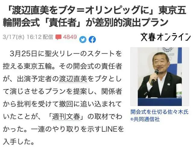 中国手机网, “东京奥运会再添风波!33岁渡边直美疑似被侮辱,导演要她扮猪表演”, 2021-03-19