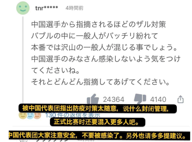 这事儿直接上了日本新闻头条。日本网友都想让中国队再多说点儿。“如果你们国家抗疫很严格,那么看到日本这么宽松的对策当然会感到不安。”