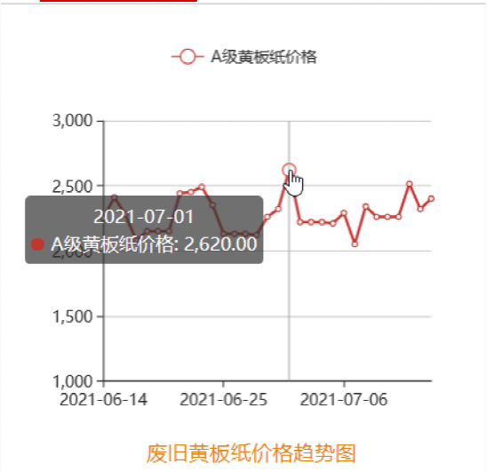 根据中纸网最新数据显示,最近一个月的废旧黄板纸价格在2500元/吨上下波动,7月1日更是高达2620元/吨。