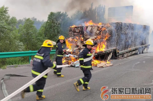 当日17时35分,市消防救援支队指挥中心接到报警后,调派涿鹿县消防救援大队,出动一辆城市主战消防车、一辆八吨水罐消防车、10名消防指战员赶赴现场救火。消防官兵在现场看到,一辆运载31吨纸箱的半挂车起火,浓烟滚滚,火势发展迅速。消防官兵立即对来往车辆进行警戒,并从起火车辆车尾及车辆左侧分别进行灭火。经过40分钟的扑救, 明火被扑灭。