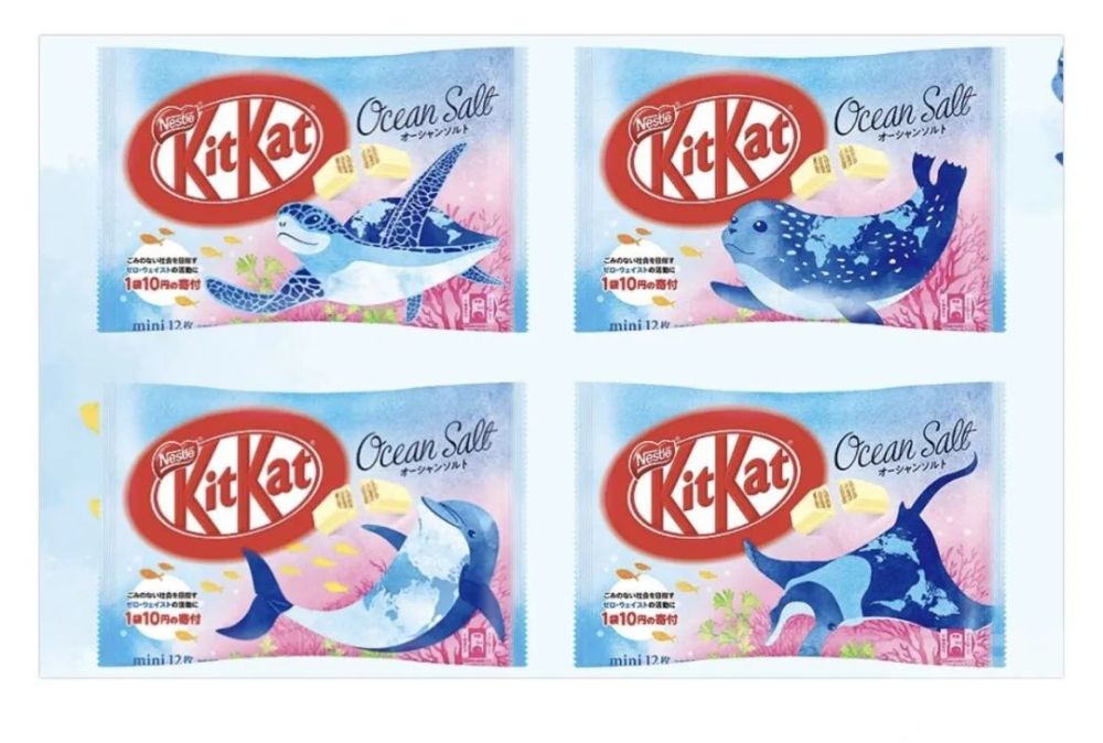为推介环保理念,雀巢旗下KitKat近两年在日本地区推出限定版可折叠纸包装。2019年9月在日本当地以传统折纸艺术Origami取代原本的塑料包装袋,购买者可以根据包装背面折纸指引,将包装袋最终折叠成纸鹤形状;