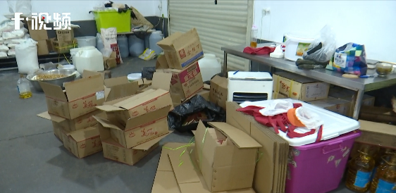 ▲作坊内月饼馅料、包装纸箱随意摆放