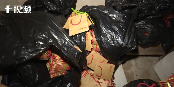 该作坊所有使用的包装纸及外包装盒都与“巢娭毑”月饼相关包装一模一样,在作坊旁的一间房屋内,执法人员还发现了大量的“巢娭毑”月饼包装袋。