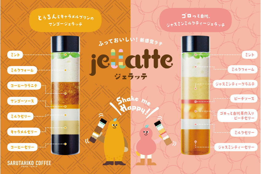日本食品公司Sarutahiko Coffee(猿田彦)在2020年9月推出了一款多层复合果冻Jellatte。“Jellatte”是将“果冻”和“拿铁”这两个词结合起来的创造词。顾名思义,它既可以喝,也可以吃。
