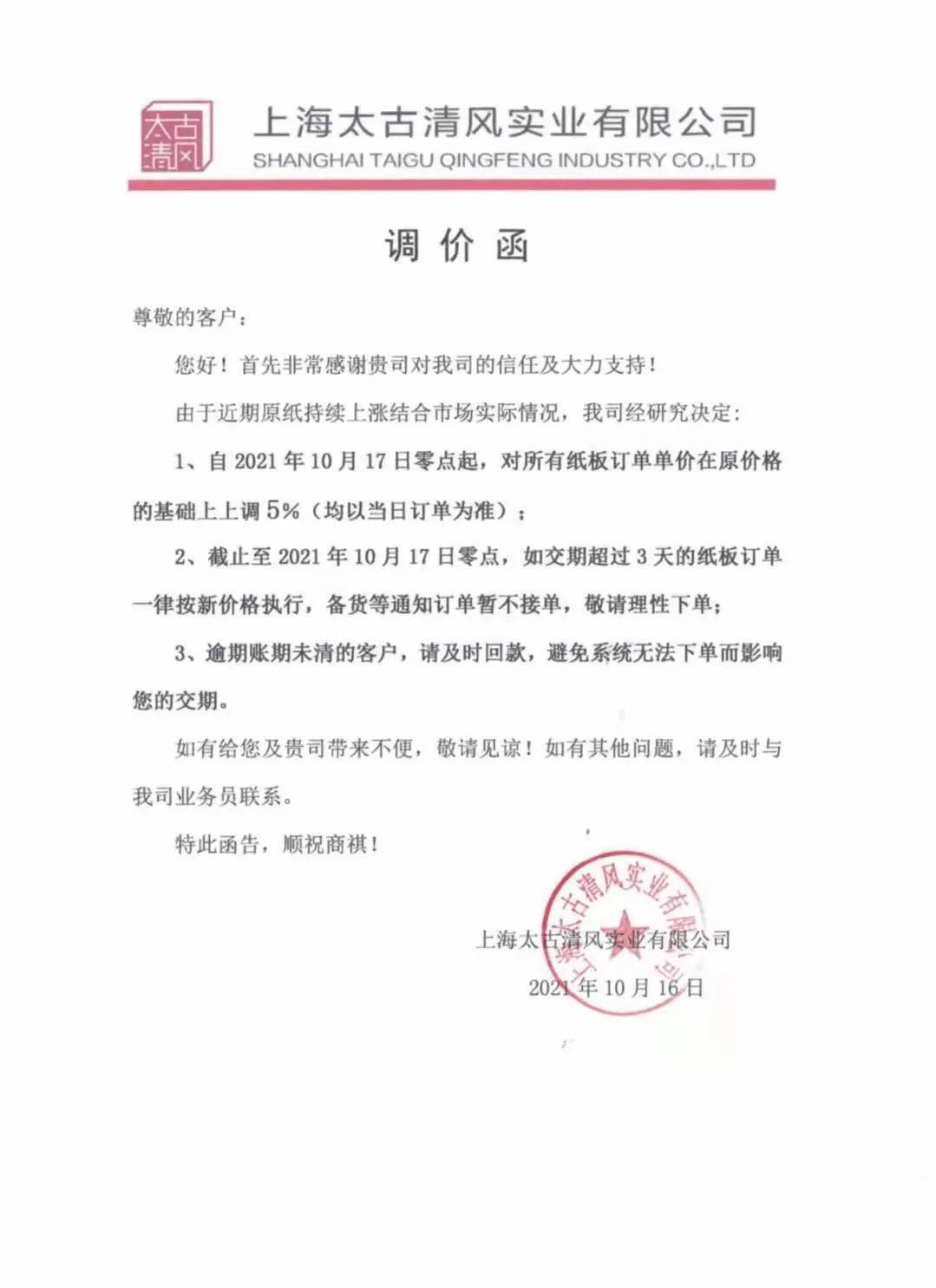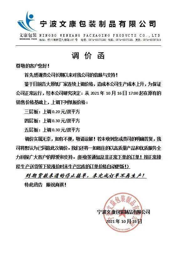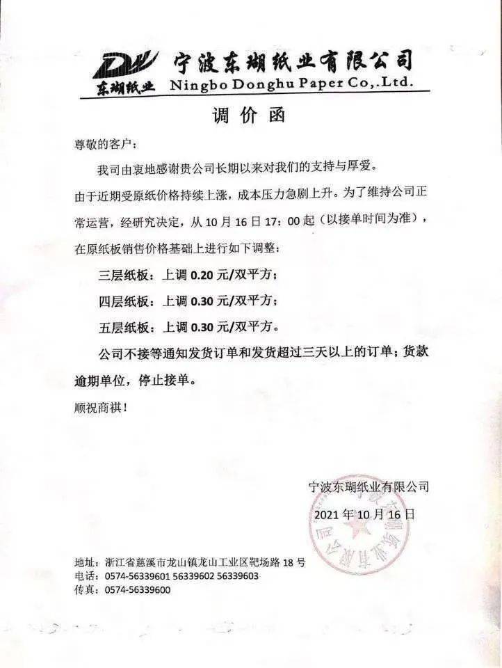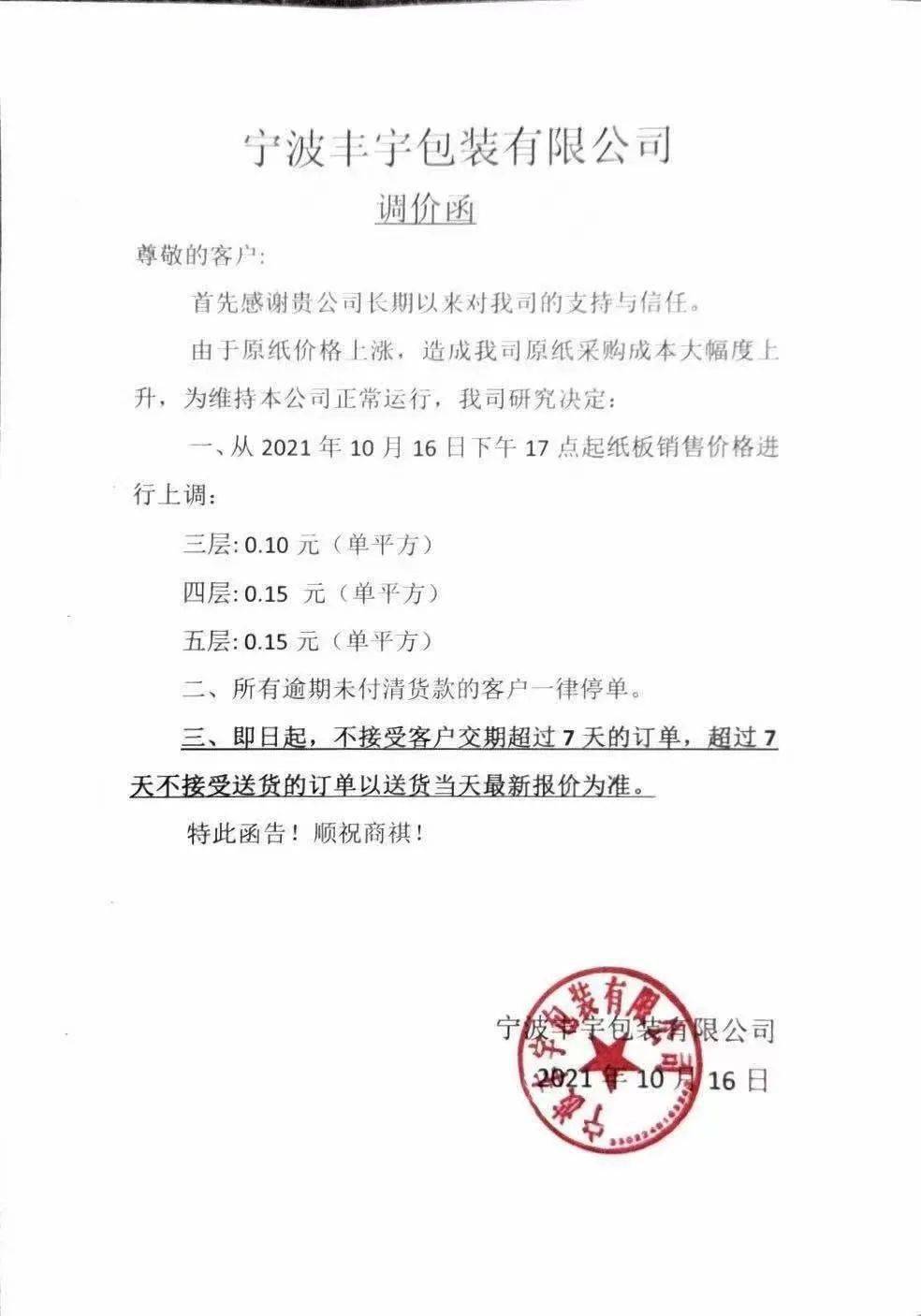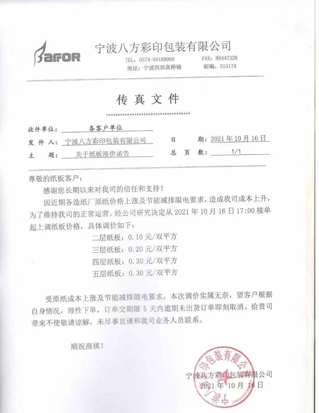 这一轮涨价势必在下游包装企业再次引起风浪。10月16日,数十家二级厂相继宣布涨价。