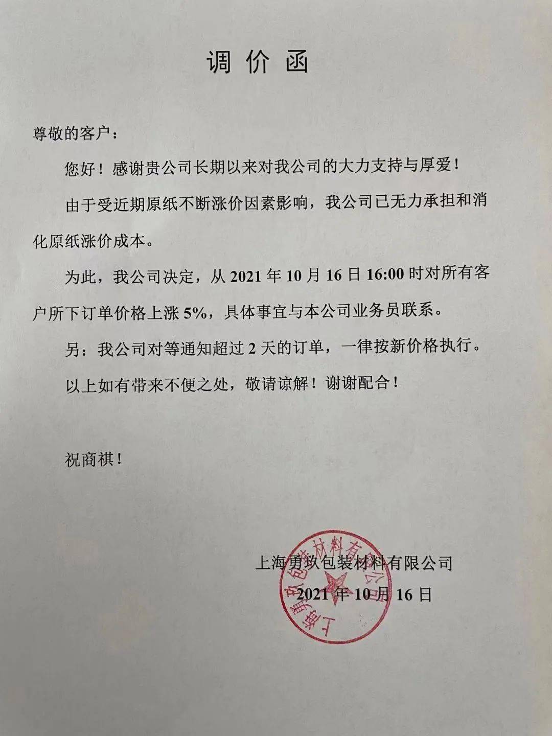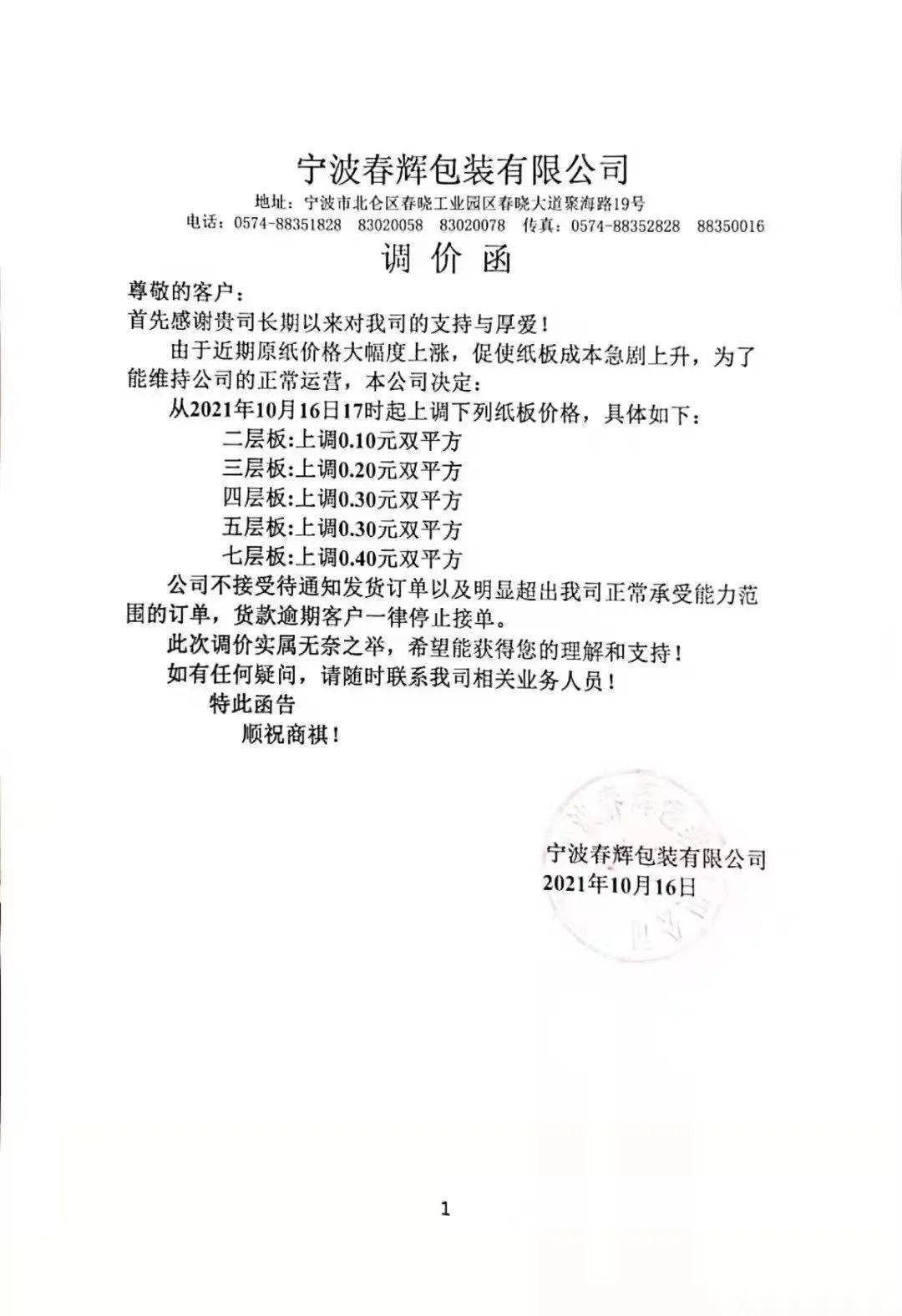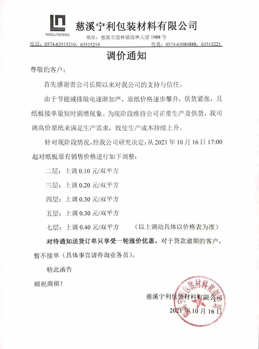 这一轮涨价势必在下游包装企业再次引起风浪。10月16日,数十家二级厂相继宣布涨价。