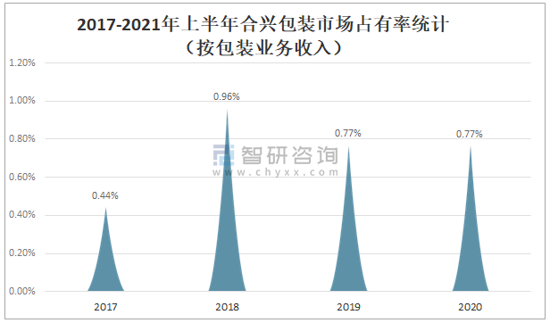 2017-2021年上半年合兴包装市场占有率统计(按包装业务收入)