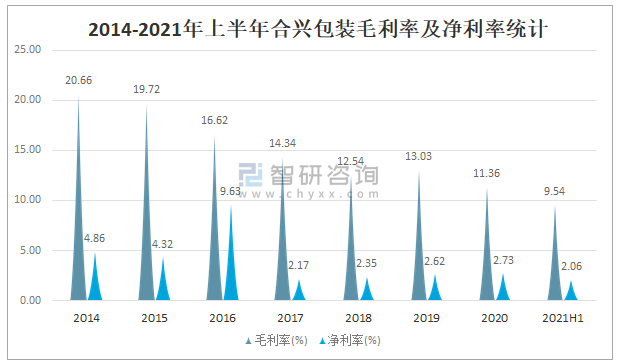 2014-2021年上半年合兴包装毛利率及净利率统计