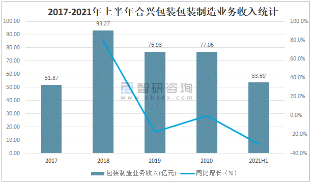 2017-2021年上半年合兴包装包装制造业务收入统计
