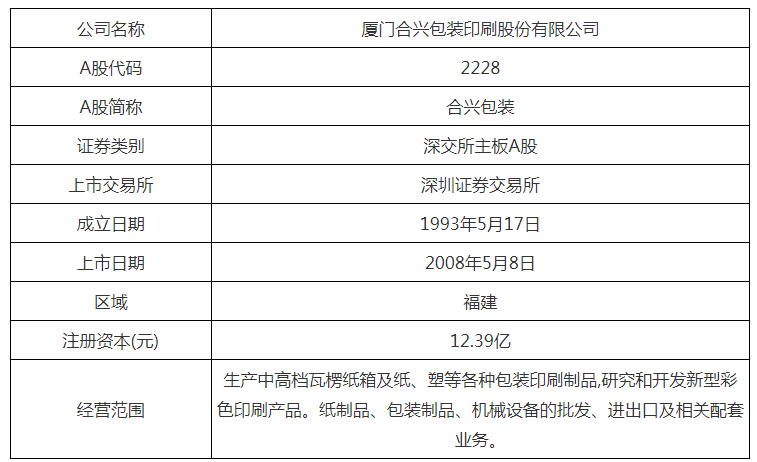 厦门合兴包装印刷股份有限公司作为瓦楞纸箱的三项国家标准的主要修订单位,在多年的经营中,一直注重企业的技术开发和创新能力,01年开始已陆续通过了ISO9001(质量)体系认证、ISO14001(环境)体系认证、OHSAS18001(健康安全)体系认证.同时公司10多年来专注于瓦楞纸箱包装行业发展,已经建立起满足客户对于质量、环保、安全的包装需求,"合兴"的品牌效应在本公司与其他企业的竞争过程中已成为重要的优势之一.公司先后获得了"先进技术企业"、"AAA级资信企业"、"超千万元纳税大户"、"守合同重信用企业"等荣誉称号,是中国包装联合会的副会长单位。